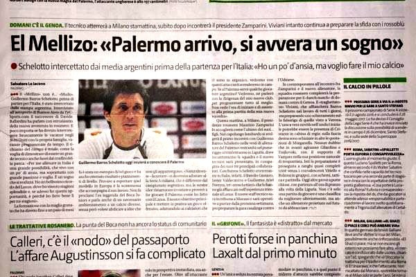 L'edizione odierna de "Il Giornale di Sicilia" riporta che, Guillermo Schelotto è atteso questa mattina a Milano dove ad accoglierlo...