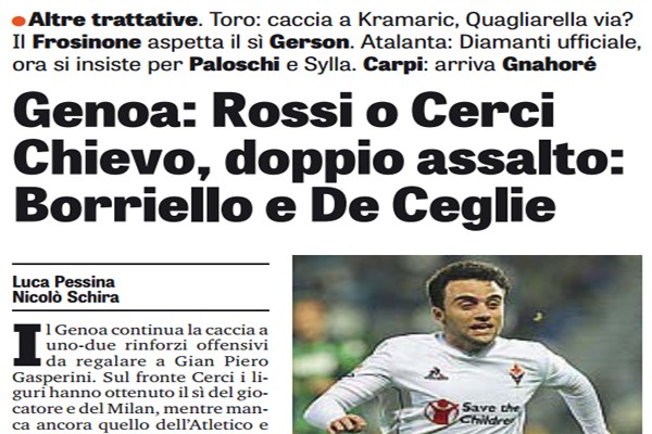 L'edizione doierna de "La Gazzetta dello Sport" fa il punto sul mercato di serie A: "Il Genoa continua la caccia...