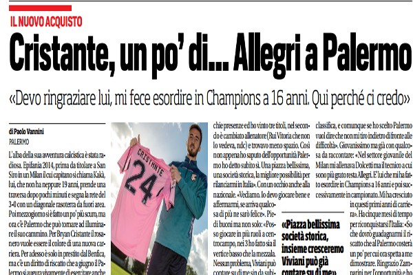 "In rosa per diventare grande, convincerò il Palermo a riscattarmi", queste le parole del neo-centrocampista rosanero, Bryan Cristante, analizzate quest’oggi...