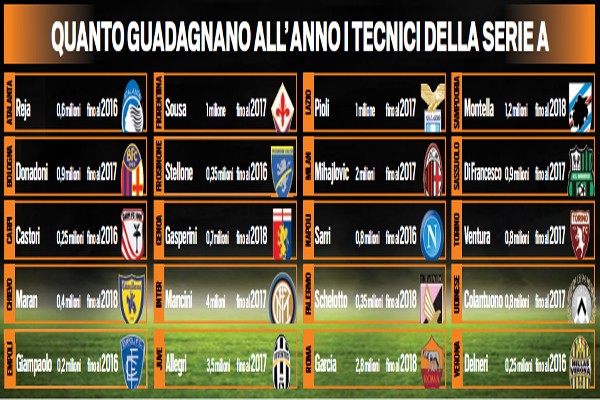 Il quotidiano sportivo "Tuttosport" ha evidenziato gli stipendi dei tecnici delle squadre di serie A. Resa nota anche la paga...