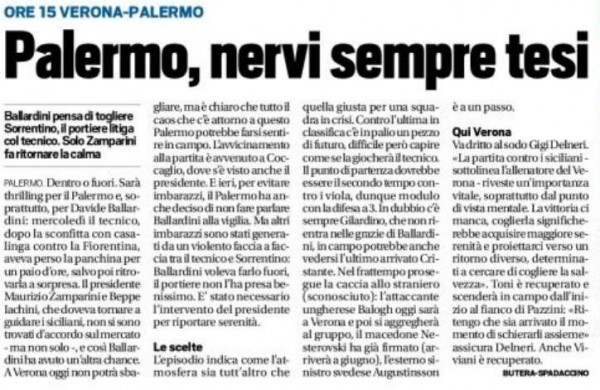 L'edizione odierna di "Tuttosport" parla degli episodi accaduti ieri in quel di Coccaglio, del faccia a faccia tra Sorrentino e...