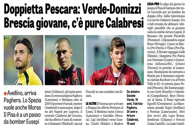 L'edizione odierna de "La Gazzetta dello Sport" fa il punto sul mercato di serie B e Lega Pro: "Nella calza...