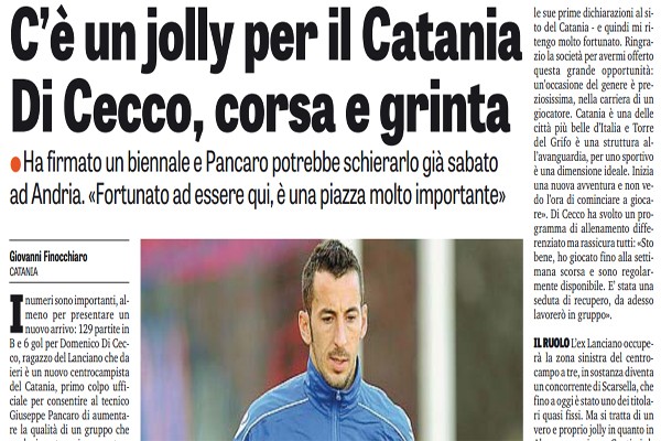 "I numeri sono importanti, almeno per presentare un nuovo arrivo: 129 partite in B e 6 gol per Domenico Di...
