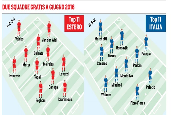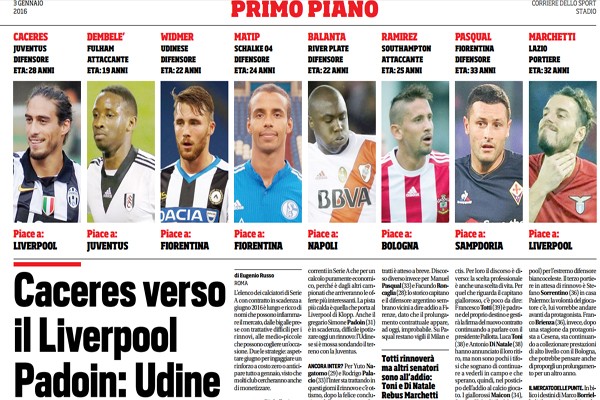 L'edizione odierna de "Il Corriere dello Sport" stila la tabella dei calciatori in scadenza che a giugno potranno accasarsi altrove...
