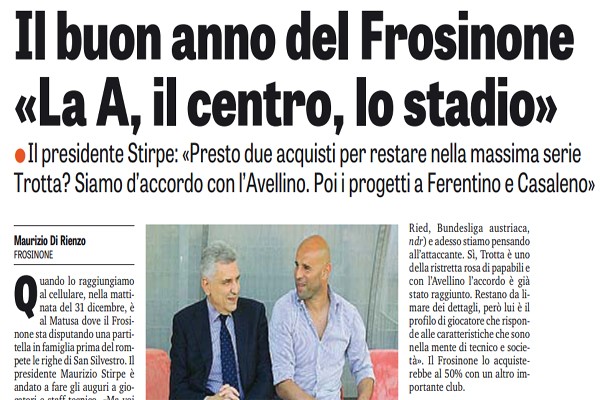 "Quando lo raggiungiamo al cellulare, nella mattinata del 31 dicembre, è al Matusa dove il Frosinone sta disputando una partitella...