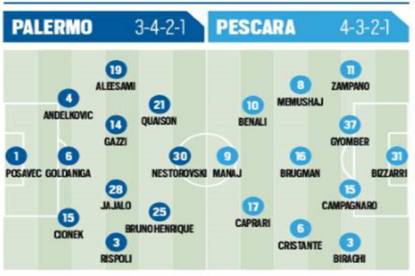 L'edizione odierna di "Tuttosport" ha stilato le probabili formazioni di Palermo-Pescara, match in programma domani sera allo stadio "Renzo Barbera"....