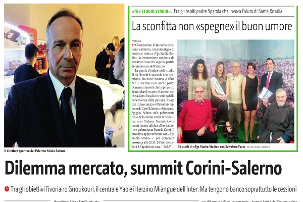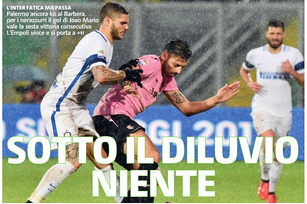 "Palermo, sotto il diluvio niente" titola l'edizione odierna de "Il Giornale di Sicilia" in prima pagina della sezione sport. "L'Inter...