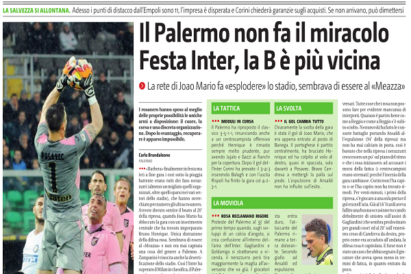 L'edizione odierna de "Il Giornale di Sicilia" ha stilato le pagelle di Palermo-Inter, promuovendo Alessandro Gazzi a migliore in campo....