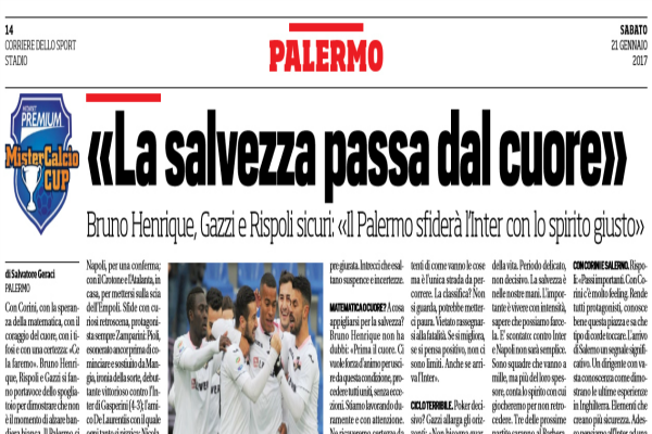 Corriere dello Sport: “E’ sfida anche tra le Primavera. I giovani di Bosi ricevono l’Inter capolista: attacco Lo Faso-Bonfiglio”