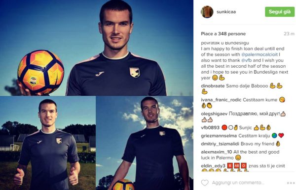 Instagram Sunjic: “Felice di aver firmato con il Palermo, voglio ringraziare…” (FOTO)