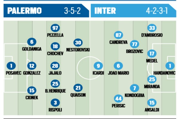 L'edizione odierna di "Tuttosport" ha stilato le pagelle di Palermo-Inter in programma domenica alle ore 15. In alto le potenziali...