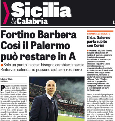 Gazzetta dello Sport: “Fortino Barbera. Così il Palermo può restare in A”