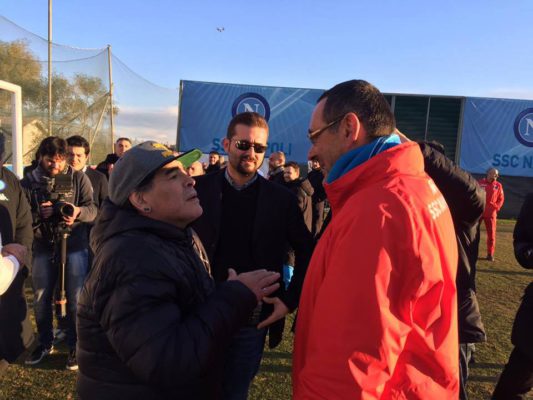 Diego Armando Maradona è stato oggi in visita al campo di allenamento del Napoli e ha salutato uno per uno...