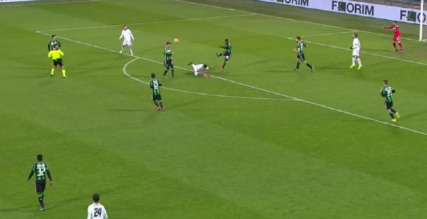 E' appena terminato il primo tempo della gara di Tim Cup Sassuolo-Cesena. Dopo 4 minuti, il centrocampista neroverde Pellegrini ha...