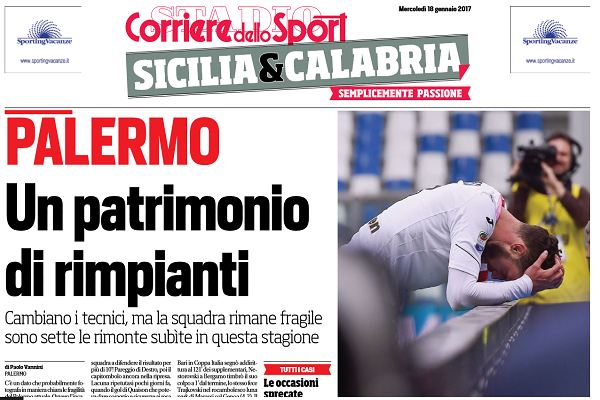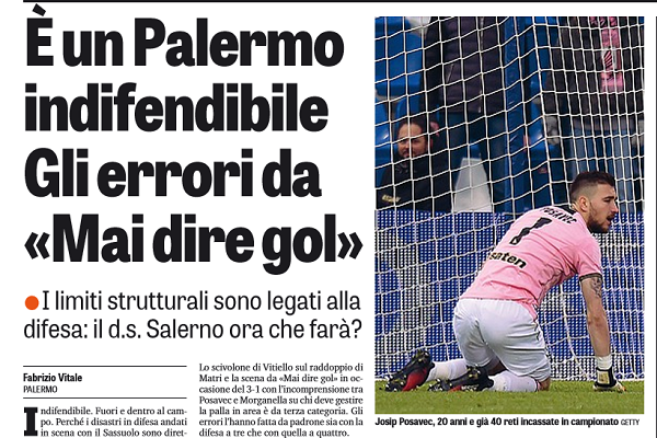 Gazzetta dello Sport: “E’ un Palermo indifendibile. Errori da «Mai dire gol»”