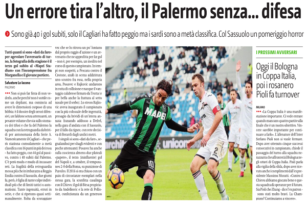 Giornale di Sicilia: “Prossimi avversari: oggi Bologna in Tim Cup, poi i rosanero. Pioli fa turnover”