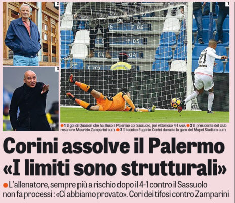 "Si dovrebbe decidere oggi il futuro di Eugenio Corini dopo giorni di veleni e polemiche: il presidente Zamparini incontrerà Nicola...