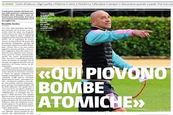 Che sulla panchina del Palermo nessuno sia al sicuro un assioma noto da anni, ma Eugenio Corini non ci sta....