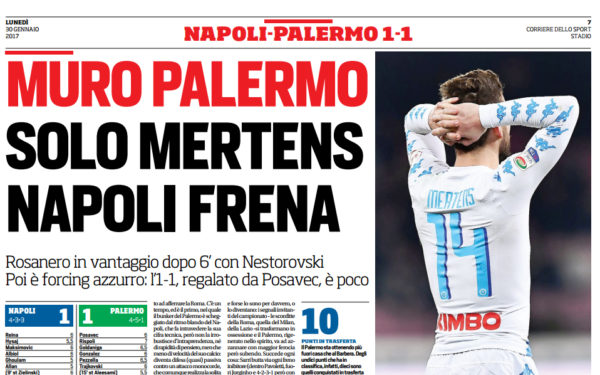 "E’ il calcio, diabolico e imprevedibile: e quando Napoli-Palermo finisce, ed è 1-1, c’è la dimostrazione limpida che nulla è...