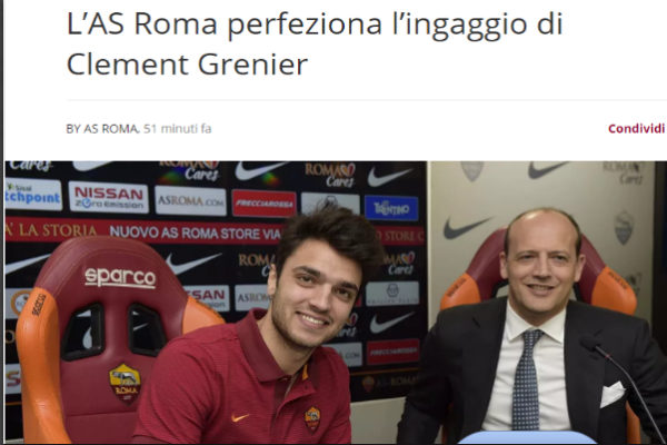 Attraverso una nota sul proprio sito ufficiale, la Roma annuncia l'acquisto di Clement Grenier dal Lione. Ecco il comunicato: "Il Club rende...