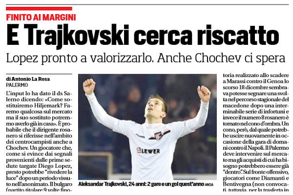 "Per Nestorovski ora è tempo di mettere una firma anche sul nuovo anno. De Laurentiis avrebbe voluto strapparlo all'amico Zamparini....
