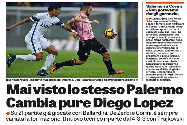 "Il ds Nicola Salerno presentando Diego Lopez è tornato sulle dimissioni di Corini: «Con Corini ho avuto un ottimo rapporto,...