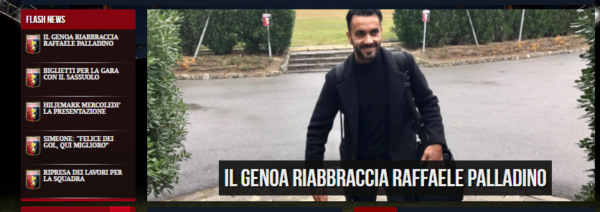 Il Genoa annuncia tramite il proprio sito ufficiale di aver prelevato dal Crotone l'esterno Raffaele Palladino. Questo il comunicato apparso...