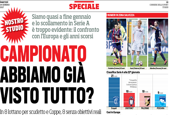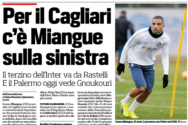 "Corini ci pensa, intanto c'è Gnoukouri" scrive in prima pagine l'edizione odierna de "Il Corriere dello Sport" che poi continua...