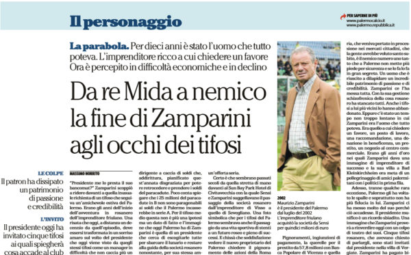 "Adesso, tranne qualche rara eccezione, Palermo gli ha voltato le spalle e soprattutto non ha più fiducia in lui. Zamparini...