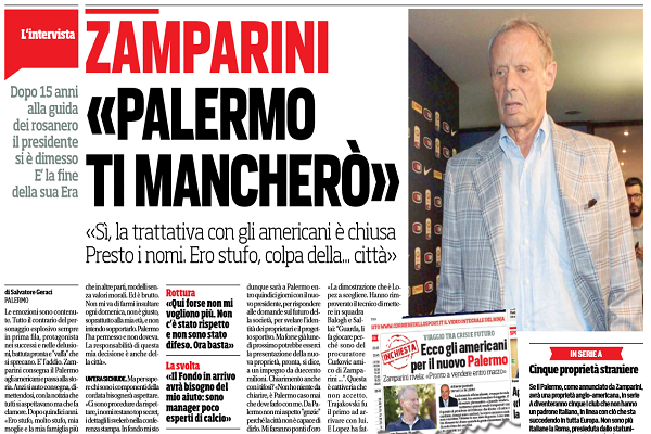 Zamparini: «Orgoglioso della mia scelta, gli americani vogliono investire…»