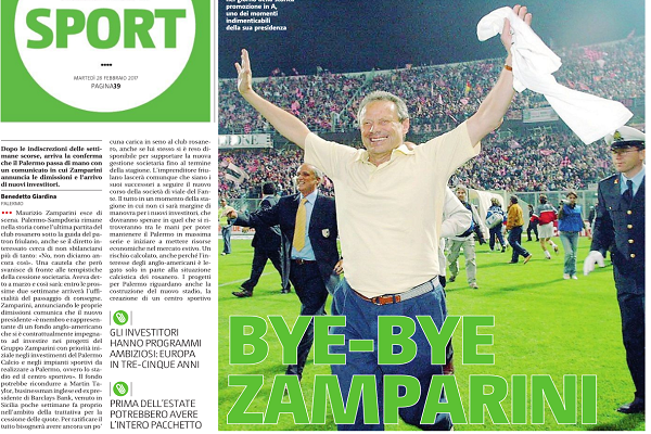 "Maurizio Zamparini esce di scena. Palermo-Sampdona rimane nella scoria come l'ultima partita del club rosanero sotto la guida del patron...