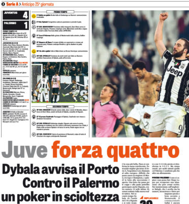 “Tutto previsto: la Juventus Iiquida il Palermo e vola, per adesso a +10 sulla Roma. Tutto facile: due gol per...