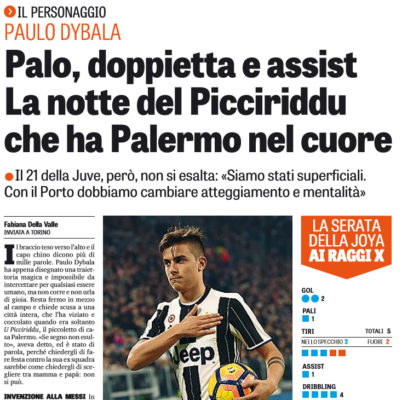 Corriere dello Sport: “Jajalo non c’è. Nestorovski fermato da Buffon – le pagelle di Juventus-Palermo”