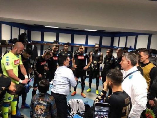 Diego Armando Maradona prima della gara con il Real Madrid è sceso nello spogliatoio azzurro per parlare alla squadra. Il "Pibe...