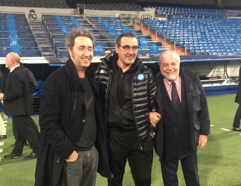 Il presidente del Napoli Aurelio De Laurentiis, in compagnia del famoso regista Sorrentino e del proprio allenatore Sarri, pubblica sul...
