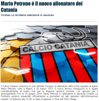 Il Calcio Catania annuncia, tramite il proprio sito ufficiale, che dopo la rescissione consensuale con Pino Rigoli, il nuovo allenatore...