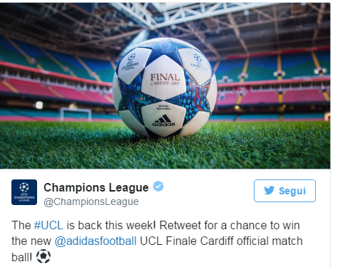 La UEFA ha presentato tramite il proprio profilo Twitter il pallone che verrà usato per la finale di Champions League...