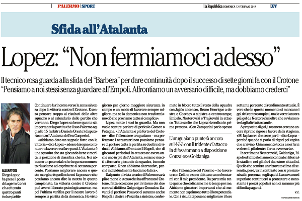 Gazzetta dello Sport: “Lopez indica la strada: «Corri, Palermo mio»”