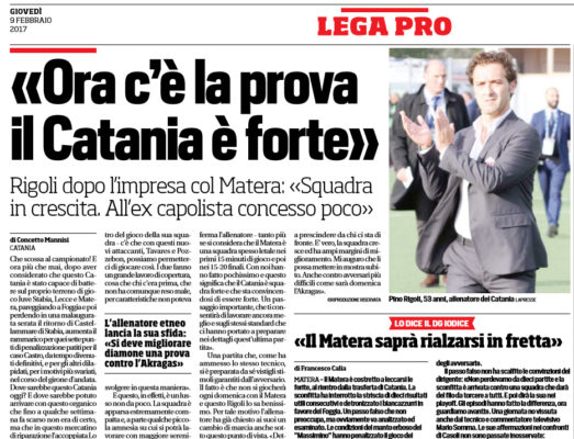 "Che scossa al campionato! E ora più che mai, dopo aver considerato che questo Catania è stato capace di battere...