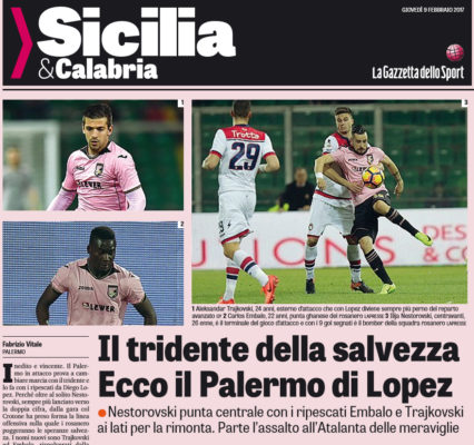 "Inedito e vincente. Il Palermo in attacco prova a cambiare marcia con il tridente e lo fa con i ripescati...