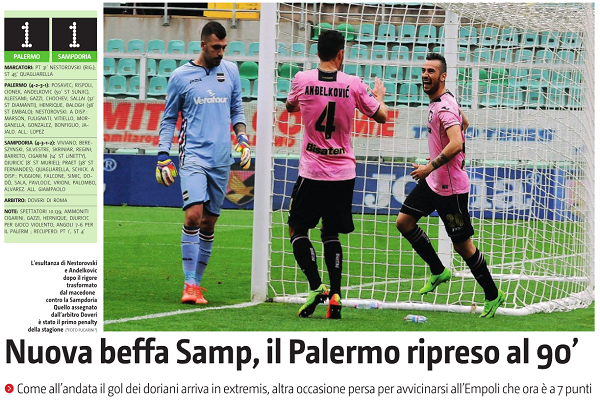 L’edizione odierna de “Il Giornale di Sicilia” ha stilato le pagelle del match pareggiato ieri dal Palermo contro la Samp....