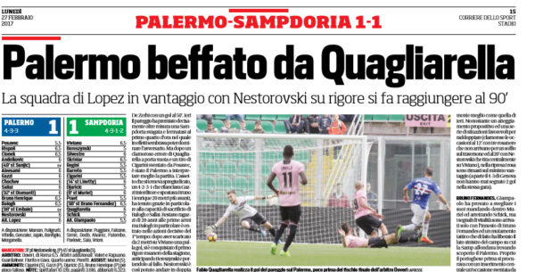 L'edizione odierna de "Il Corriere dello Sport" ha stilato le pagelle di Palermo-Sampdoria, match pareggiato ieri al Barbera. Di seguito...