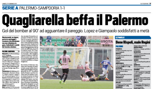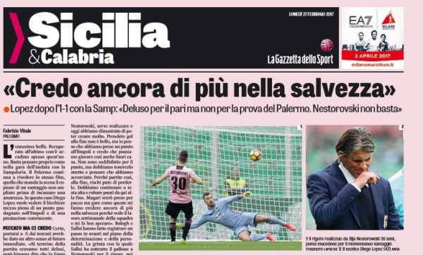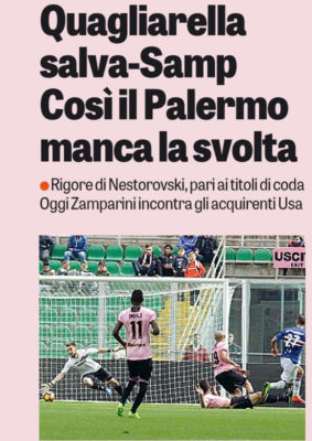 "L’ennesima beffa. Recuperato all’ultimo com’è accaduto spesso quest’anno. Basta pensare proprio come nella gara dell’andata con la Sampdoria. Il Palermo...