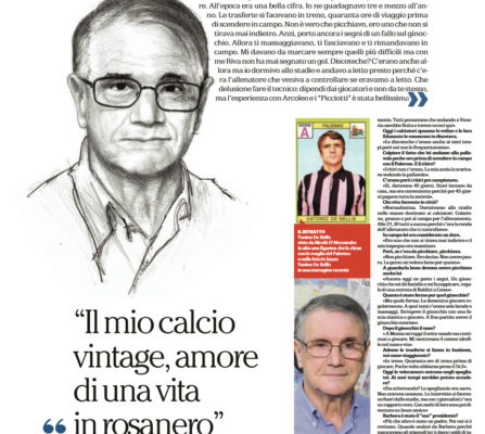 "De Bellis guardi questa figurina. Maglia rosanero a strisce verticali, il bottoncino che chiude il colletto nero. Lo sguardo impettito...