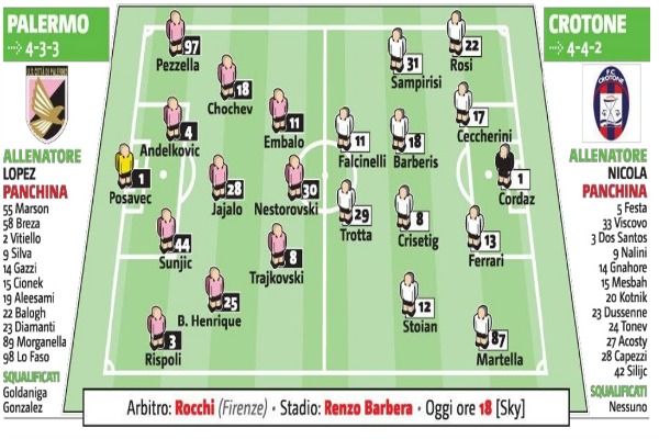 Alle 18 di questo pomeriggio scenderanno in campo al "Barbera" Palermo e Crotone, in occasione della 23^ giornata del campionato...