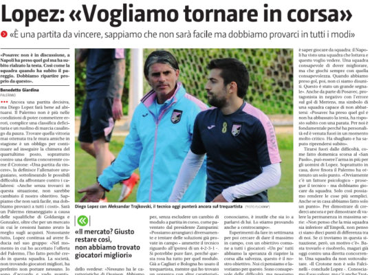 "Ancora una partita decisiva, ma Diego Lopez farà bene ad abituarsi. Il Palermo non è più nelle condizioni di poter...