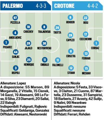 L'edizione odierna di "Tuttosport" ha stilato le probabili formazioni di Palermo-Crotone, sfida in programma domenica alle ore 18 al "Renzo...