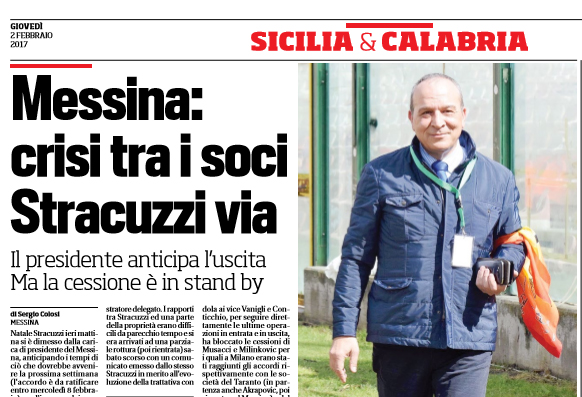 "Natale Stracuzzi ieri mattina si è dimesso dalla carica di presidente del Messina, anticipando i tempi di ciò che dovrebbe...