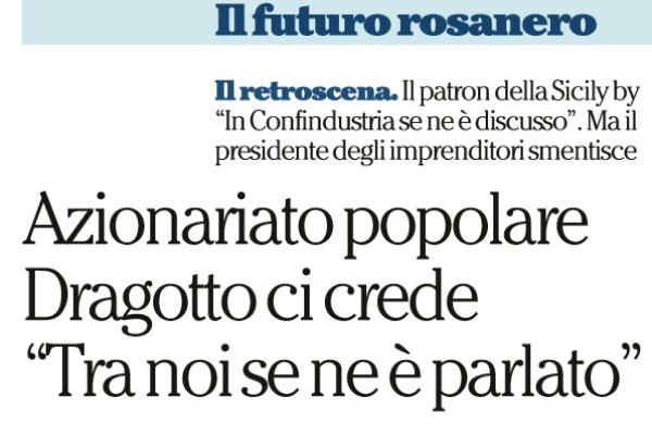 "Il Palermo a una cordata di imprenditori locali, sostenuti da un azionariato popolare dei tifosi. La cessione della società di...