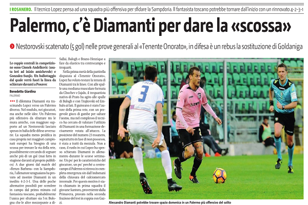 "Il dilemma Diamanti sta trascinando Lopez verso un Palermo diverso. Nel modulo, nei giocatori, ma anche nelle idee. Un Palermo...